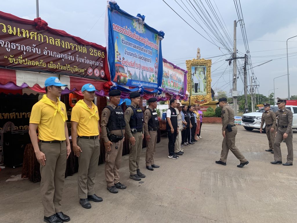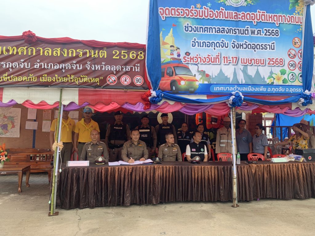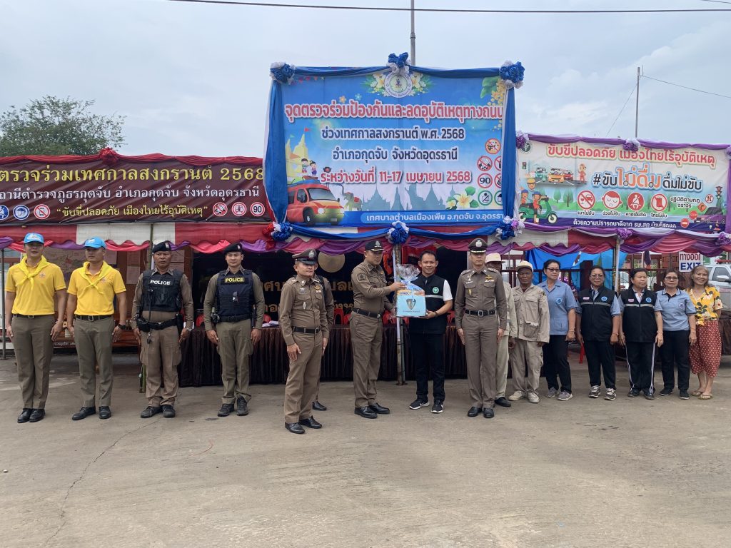 วันที่ 11 เมษายน 2568 เวลา 10.00 น. พ.ต.อ.อัมรินทร์ อยู่เย็น ผกก.สภ.กุดจับ ร่วมกับฝ่าย ปกครอง ส่วนท้องถิ่น อสม. และภาคีเครือข่าย ร่วมพิธีเปิดจุดตรวจจุดบริการประชาชนช่วงเทศกาลสงกรานต์ 2568 ณ ลานหน้า เทศบาลตำบลเมืองเพีย